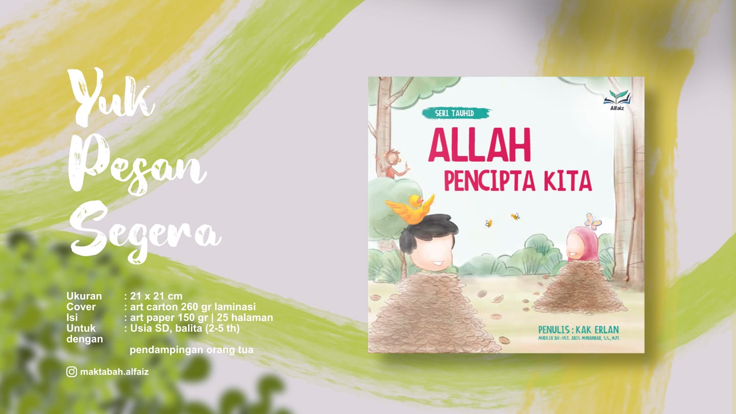 Buku “Allah Pencipta Kita” ini merupakan lanjutan buku serial tauhid yang ditulis oleh Kak Erlan. Setelah membahas tentang keberadaan Allah, melalui buku ini Kak Erlan mengajak anak-anak untuk belajar tentang konsep Rubbubiyah (perbuatan-perbuatan Allah), sebagai salah satu rukun dalam beriman kepada Allah.